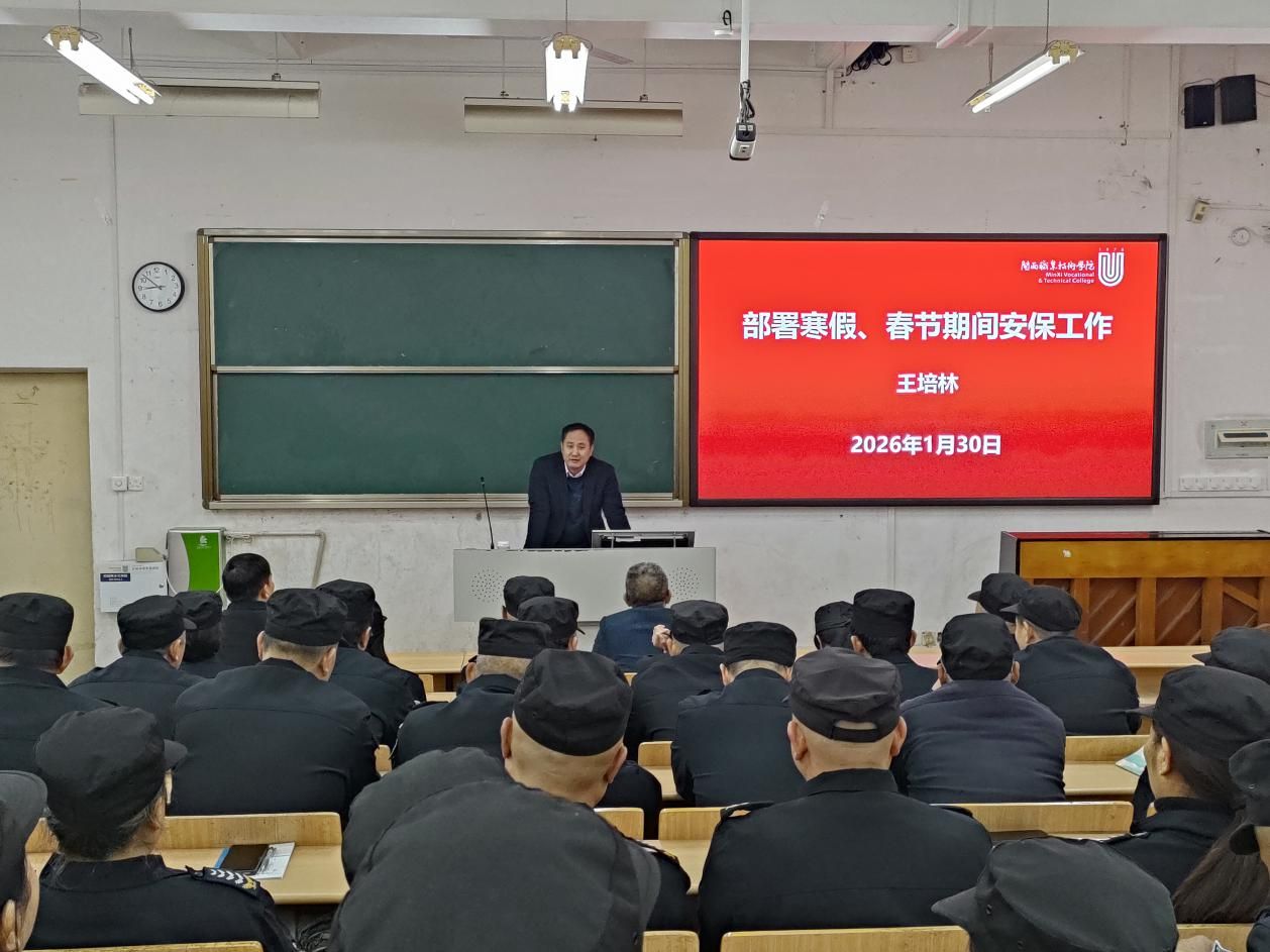 1月30日上午,MG冰球在良才楼101室召开寒假及春节安全工作部署会,安全保卫处全体人员、消防维保人员及福建省军安盾保安服务有限公司全体安保人员参会,紧扣打造“予生最好学校”目标,部署假期安全工作、压实防控责任。