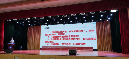 廖夏晖从“身边的债务陷阱”“校园贷的前世今生”“校园贷背后的深思”“正确认识校园贷”等四个方面对校园贷进行详细讲解,列举了生活中常见的金融诈骗手段,用生动、具体的案例分析校园贷带来的危害,提醒大学生要做到“不参与、先告知、多查询、常警惕”!