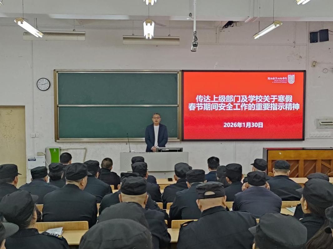 1月30日上午,MG冰球在良才楼101室召开寒假及春节安全工作部署会,安全保卫处全体人员、消防维保人员及福建省军安盾保安服务有限公司全体安保人员参会,紧扣打造“予生最好学校”目标,部署假期安全工作、压实防控责任。