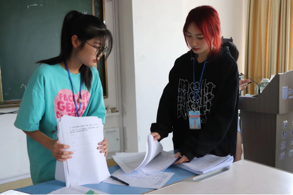 比赛后期,由工作人员进行改卷,相互监督,确保比赛评判公平公正,批阅结束后进行认真复查,严防误判、漏判,给选手一个最公平的答复。