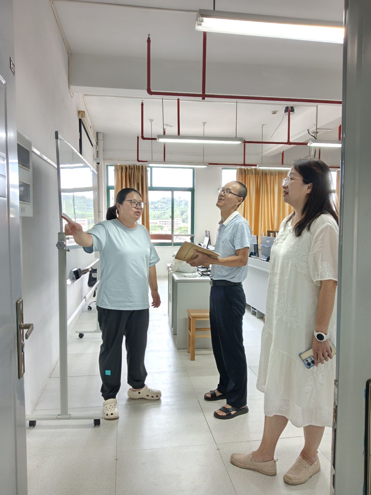 检查组重点查看了实训室设备运行、教学设施、用电线路安全及环境卫生等情况,对发现的问题进行现场记录并要求立即整改。郭书记强调,实训室安全是教学工作的底线,必须压实责任,强化日常管理,确保师生人身安全和教学有序开展。她要求以此次检查为契机,进一步做好实训室的各项管理工作,为新学期教学工作提供坚实保障。