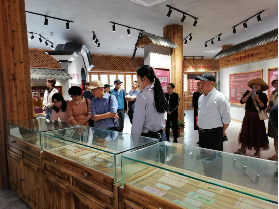 讲解员带着全体党员参观基地