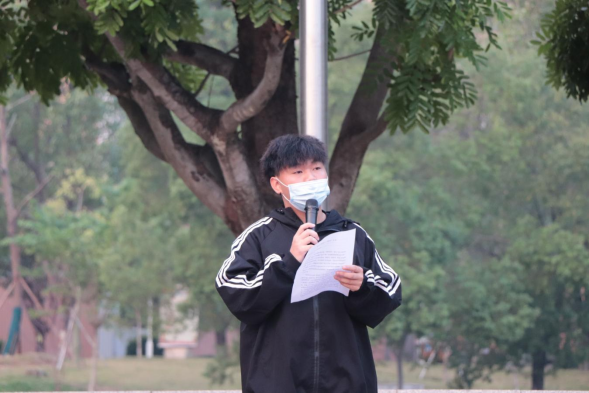 (学生代表张伟德发表国旗下讲话)