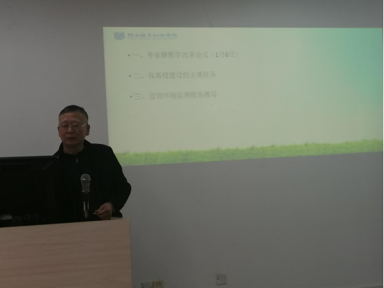 财经商贸学院院长吕建林解读了双高校建设中的建设方案和任务书,结合电子商务专业群的建设,进一步明确了2022年需完成的具体任务,要求每位教职工从中找到自己可以去做的或准备去做的项目,并积极地、创造条件地去完成。要求大家要清醒地认识到,双高校建设中的电子商务专业群建设项目,是财经商贸学院发展中的一个新的契机,每个人要有危机感和紧迫感,要能在双高校建设中找到自己的位置,并较好地完成项目任务。各支部要发挥战斗堡垒作用,把党建与业务有机结合起来。党员教师发挥引领示范作用,确保各项建设任务保质保量完成。
