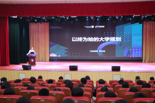 抖音数字经济产业学院院长(企业方)、抖音集团蔡文婷以终为始的大学规划》的开学第一课演讲。蔡老师以自己的亲身经历、抖音集团的工作岗位用互动的方式帮助大家进行自我认知职业认知以就业为终,以现在为始,从入学开始就为就业准备希望大家能够在自己有限的时间内做多样的体验不断地试错找准方向充实自己,成就自己。