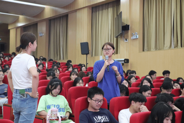 (蔡老师与现场新生互动)