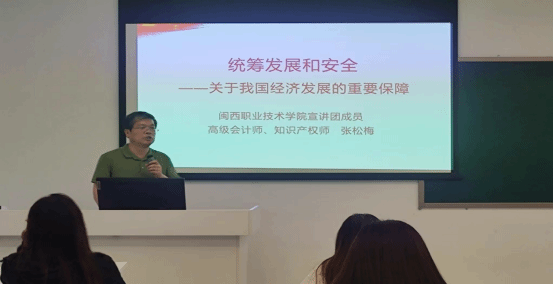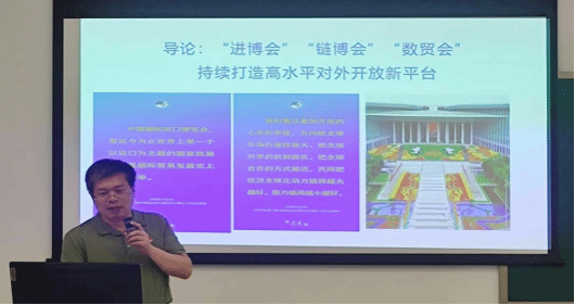 张松梅老师以《坚定不移全面扩大开放——关于我国经济发展的重要法宝》为题,以“进博会”“链博会”持续打造高水平对外开放新平台为导论,从“坚定实施对外开放基本国策、稳步扩大制度型开放”五个维度进行解读交流。张松梅老师以《统筹发展和安全——关于我国经济发展的重要保障》为题,从”必须坚持高质量发展和高水平安全良性互动、维护国家金融安全”等九个视角进行宣讲解读。