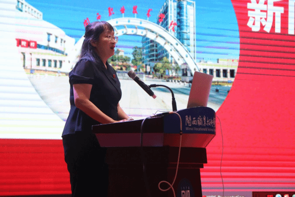 财经商贸学院院长郭玲娜致新生开学致辞,她对各位新生的到来表示热烈的欢迎并介绍财经商贸学院的历史,并以“三年后的一封信”为引,由衷地祝愿新生的未来之路。
