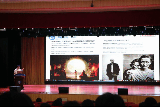 抖音集团中国企业社会责任部许洪刚老师从职业生涯规划入手帮助大家进行自我认知、职业认知,从入学开始就为就业准备,选择合理就业方向。DMC数据与模型服务中心校企管理组郑浩喜老师通过展示人工智能发展现状,指出如今社会的科技生产方向发生变革,为同学们的未来就业前景提供了多样的选择。