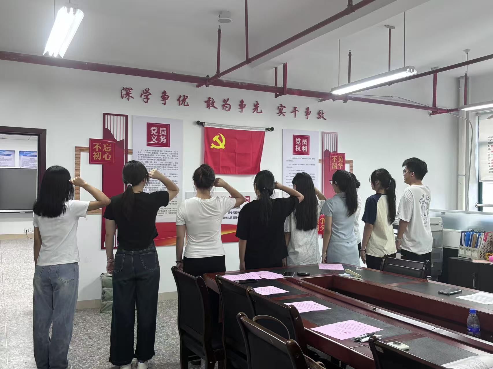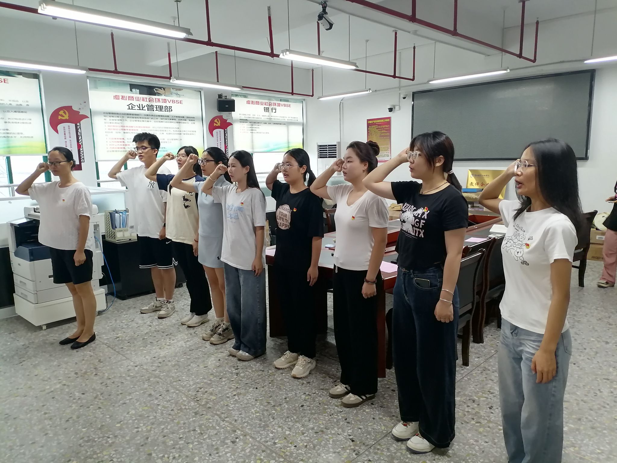 2025年6月25日,财经商贸学院党委在万源楼808为45期新发展8名学生党员举行庄严的入党宣誓仪式。