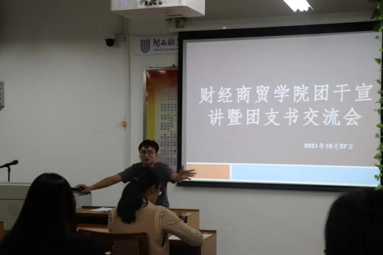 2021年10月27日,我院在实训楼801教室举办了团干宣讲暨团支书交流会,本次团干宣讲主要由团委书记游龙老师授课,辅导员钟丽珍老师以及团干、各班团支书参加了本次学习。