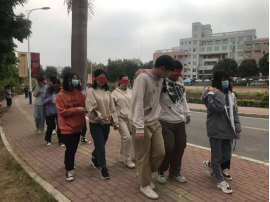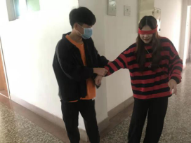 盲人与哑巴:这是同学们的第一个游戏,起初都对这个游戏满怀期待,可当口罩和眼布带上时,同学们体会到了深处黑暗,不能讲话的苦恼。内心的小不安都通过动作表现出来。游戏中同伴之间的信任起着重要的表现。一场信任与挑战就此拉开序幕。