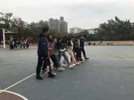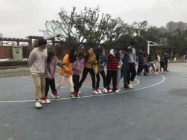 十人九足:最后一个游戏它给同学们传输的更多的是在游戏中所需要的团队责任感,队员之间的支持,信任与默契。让同学们体验合作的力量,当团队步伐不一时这个团队便会寸步难行。而当团队步伐一致时也可以一路小跑,所以结果的好坏与一个团队的内部有着密不可分的关系。