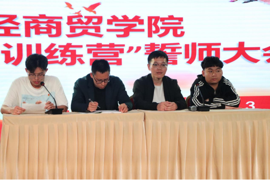 4月3日晚,财经商贸学院在学校数字化艺术中心组织召开第一期“红土先锋训练营”誓师大会。第一期“红土先锋训练营”是在财经商贸学院第二届学生社区文化节依托下开展的活动,本期活动的主题为“自律自强 学法守法”,共有265名学生报名参加。会议由辅导员张继东老师主持。