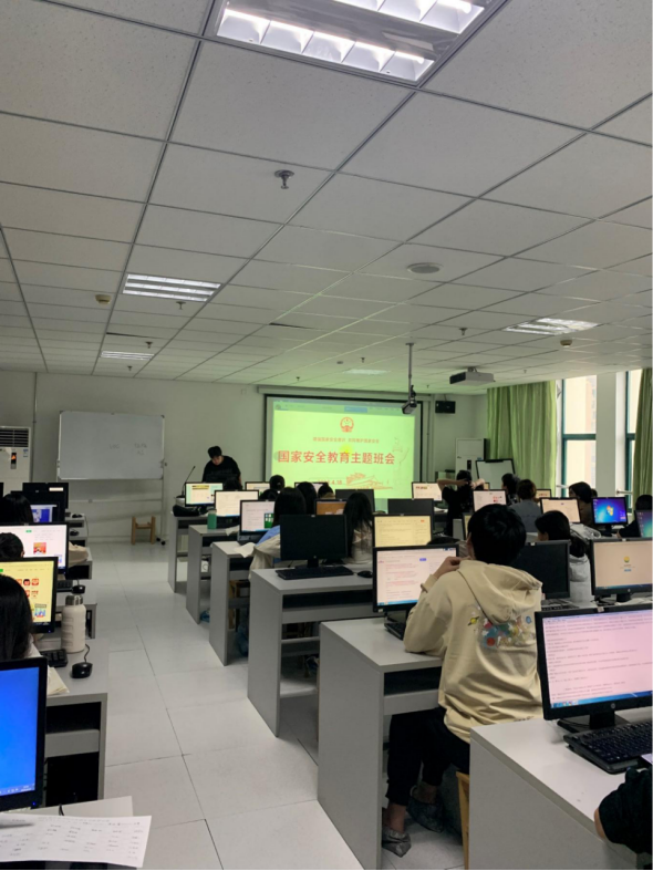 4月14日下午,我院组织各班级以宿舍为单位进行线上观看网络直播,学习“国家安全教育”的相关知识,使广大学生牢固树立“遵纪守法,安全第一”的意识。活动期间,各班通过召开有关“国家安全教育日”的主题班会,以及在易班上进行“全民国家安全教育日”专题课群的学习,确保将“国家安全教育”活动落实到实处,进一步提高学生的国家安全意识。院两委传媒部特此结合实际,通过制作主题黑板报和易拉宝等宣传方式,大力宣传国家安全知识,营造浓厚的安全宣传教育氛围。