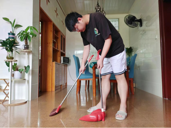 (同学们进行宿舍劳动实践活动)