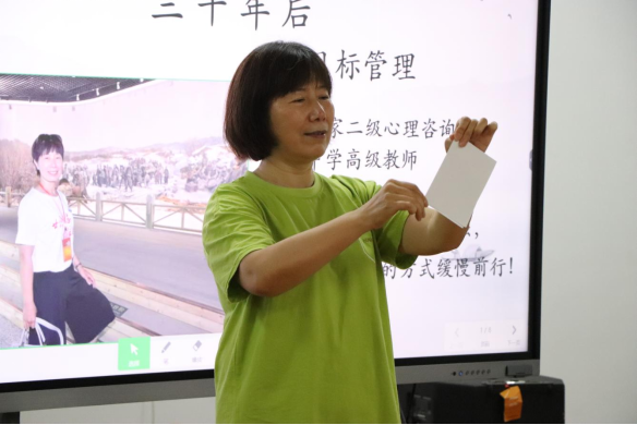 第一阶段,张老师让大家报数,并将报数相同的同学们分为一组,共五个小组,并推出每个小组的组长;接着,张老师要求大家拿出一张白纸制作成自己的财富秘籍,并让大家将自己30年后的规划写在自己的财富秘籍的第一页,等大家讨论完之后,每组推出一个代表上台讲述自己对未来的规划。