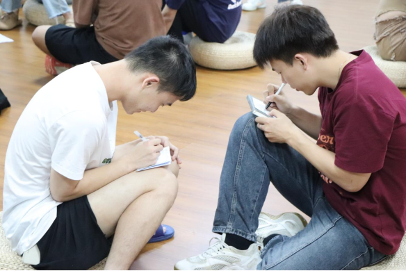 活动第三阶段,张老师带领大家一起探讨获取财富的方式,无论是对现状还是未来,大家都在自己的笔下憧憬着未来的规划,张老师为此建议大家,远离坏情绪,不要浪费时间,珍惜自己的青春年华,多去阅读书籍增长自己的见识。