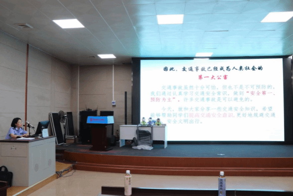 为进一步强化校园安全教育工作,引导学生形成“严格遵守交通法规、自觉维护良好秩序、携手保障交通安全”的意识,预防和减少学生交通安全事故的发生,共同维护和营造安全、稳定的校园环境,2023年9月21日,我院特邀龙岩市交通警察支队法治宣传办公室的刘艳玲、陈艳两位同志为大家开展主题为“交通安全进校园,扬帆起航筑青春”的交通安全讲座活动,参与本次活动的还有扬帆驾培负责人陈光跃教练、团委书记钟丽珍老师,团委副书记卢沂老师,22级院两委干部及部分23级同学。