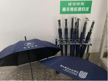 除上述所列诚信驿站设有的学习、生活、医药用品之外,诚信驿站还设有流动雨伞可供老师、同学们无偿借用,既给予了师生便利,又培养和检验了学生的诚信自觉。