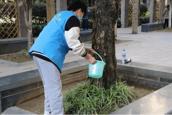 活动中期,志愿者们在西门集合签到,清点人数并进行分组,由活动负责人传达注意事项后,大家共同前往月山小区开展此次的志愿活动。到达地点后,各个小组都拿上自己的工具开始行动,有的组负责浇灌树木,有的组负责捡拾草坪垃圾,大家各司其职,完成后在社区内空地摆点开展绿植领养活动,志愿者们将带好的环保植物摆放好之后,社区里的居民们马上就围了上来,与志愿者们互动着,氛围十分的融洽,充斥着欢声笑语,营造了和谐温馨的画面。