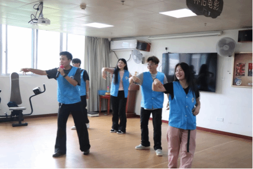 活动前期,大家在校门集合后,穿好志愿服,带好活动道具,出发至养老院,到达后快速进行场地布置、表演排练、调试音乐为接下来的表演做充分准备。