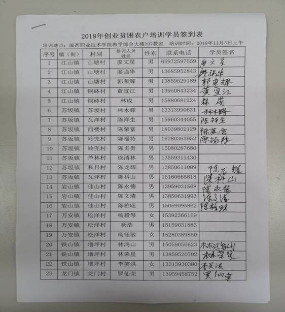 为了积极响应党中央、国务院为新农村建设助力的号召,2018年11月5日,张赠富老师为龙岩市新罗区68位贫困户作题为《农村电商变革之道与微商实战基础》培训,他从农村电子商务简单运营流程及定位、微商实战等方面为农民朋友进行讲解和实际动手操作演示,培训现场气氛热烈、反响很好,赢得大家的一致好评。通过此次培训,提升了专业老师的社会服务能力,为地方经济发展提供了智力支持。