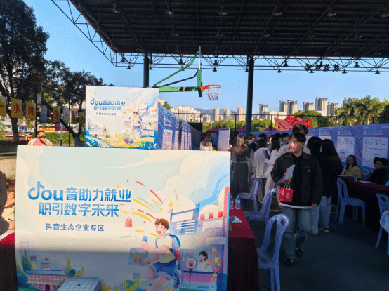 2024年12月17日,抖音生态体系内的11家知名企业与财经商贸学院携手合作,在槟龙球场共同举办了主题为“小而精”专场招聘会,为2025届毕业生提供市场营销、网络营销与直播电商、会计等专业共184个招聘岗位需求。