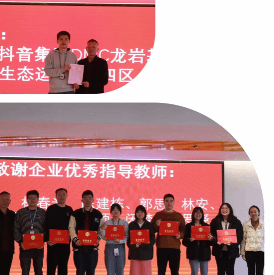 抖音数字经济产业学院吕建林副院长对全体学生进行了安全培训教育,并作了本学期工作简报;企业老师陈建栋作了《数据标注的昨天、今天和明天》专题分享;财经商贸学院党委副书记黄小红宣读了给龙岩基地的感谢信,并对表现突出的优秀企业导师和优秀学生进行了表彰。