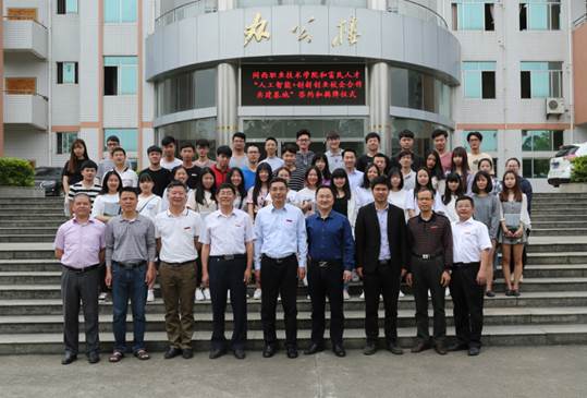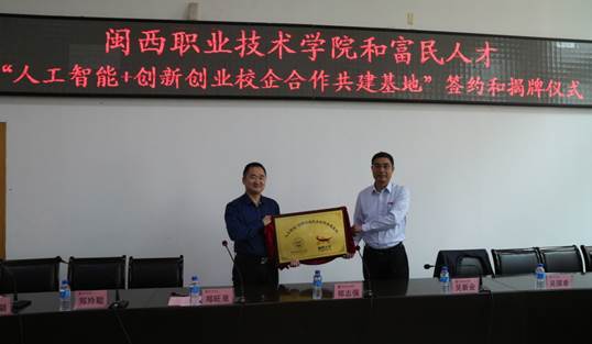 4月26日上午,MG冰球与福建富民云咖信息科技有限公司“人工智能+创新创业校企合作共建基地”签约和揭牌仪式在办公楼二楼举行。校长郑志强与福建富民云咖信息科技有限公司总经理郑旺泉分别作了讲话、签订合作协议并为“人工智能+创新创业校企合作共建基地”揭牌。副校长吴新业,公司相关部门负责人,学校产学研合作处、创新创业学院负责人,财经商贸学院党政负责人及相关专业师生等参加揭牌仪式。