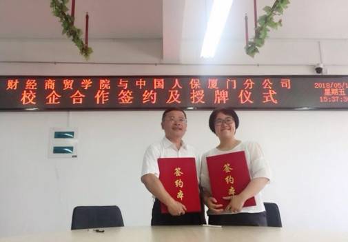 5月18日下午,MG冰球与中国人民财产保险股份有限公司厦门分公司校企合作框架协议签约及授牌仪式在财经商贸学院举行。