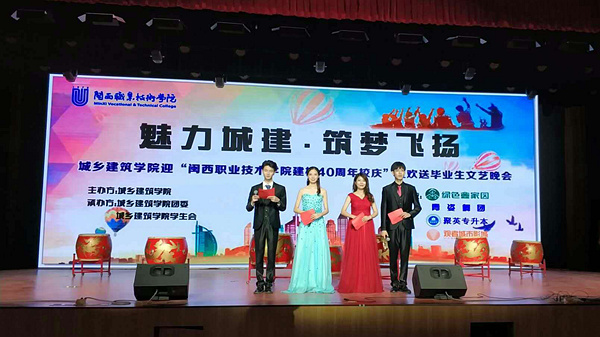 6月10日晚由城乡建筑学院主办,团委和学生会承办的“魅力城建筑梦飞扬”--迎建校40周年庆暨欢送毕业生文艺晚会在学校新建的“大匠堂”隆重举行。城建院党政领导、老师及城建学院学生近800人参加了晚会,学校党委书记卢伟耀亲临晚会现场观看了演出。