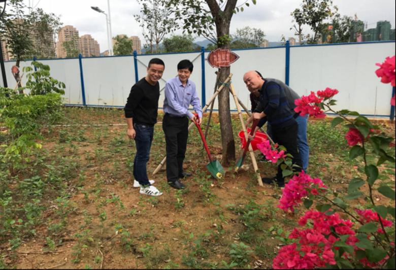 伴着清晨的阳光,校友们相约而来。早上九点,校友们在大匠堂举行建校四十周年庆祝大会,学校领导们介绍闽大这四十周年的变化,校友们也纷纷感慨闽大成长的惊人速度及龙岩经济社会发展的迅速。参加重建的槟龙球场的剪彩仪式,槟龙球场是闽大四十周年变化的见证之一,这个承载着无数风雨,无数闽大人青春回忆的地方。令人兴奋和感动之一的就是我院校友座谈会了,校友们有些正值青春年少,有些正值事业有成的风光年华,有些已经白发苍苍,脸上的皱纹和头上的白发已刻下了岁月的痕迹。更有一些校友,带着家人小孩一起培土种树,意在把对母校深深的怀念和感谢及对自己的青春岁月永远留在闽大的土地上!
