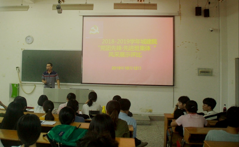 2019年10月12日晚七点30分,城乡建筑学院在良才楼501举行2018-2019学年“党团先锋•先进班集体”风采展示评比及表彰活动。该活动由城建院党委副书记蓝新华老师主持,院辅导员、班主任、2019级班级代班、院两委干部、各班级班委共165人参加了此次活动。