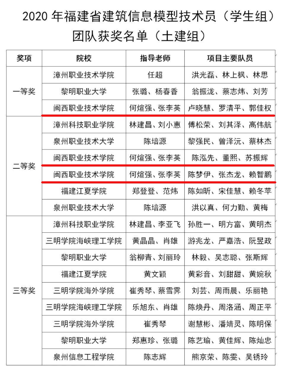 11月7日,2020年福建省高校建筑信息模型技术员(学生组)竞赛暨“中国建设杯”第三届全国装配式建筑职业技能竞赛建筑信息模型技术员赛项福建高校选拔赛落下帷幕,MG冰球突破官网代表队(指导老师:何煊强、张李英)荣获福建赛区一等奖一项、二等奖两项。