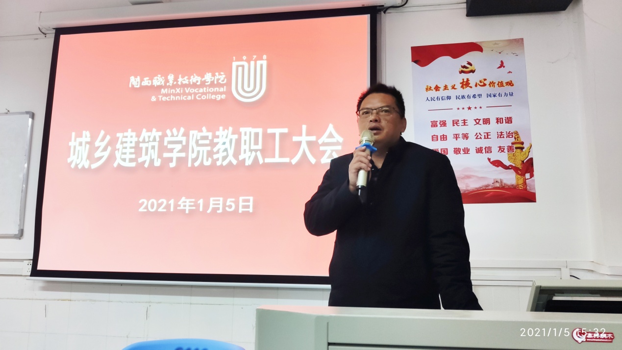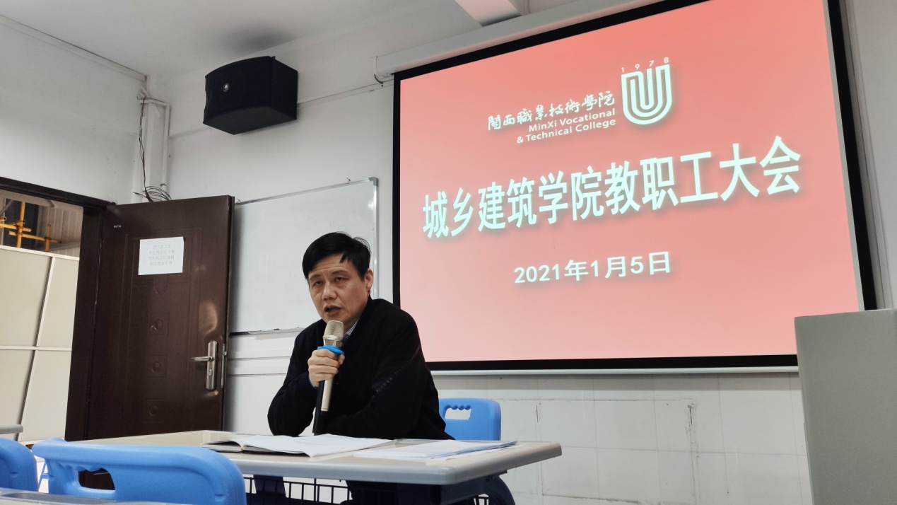 1月5日,城乡建筑学院召开全体教职工大会。会议由李志文书记主持。