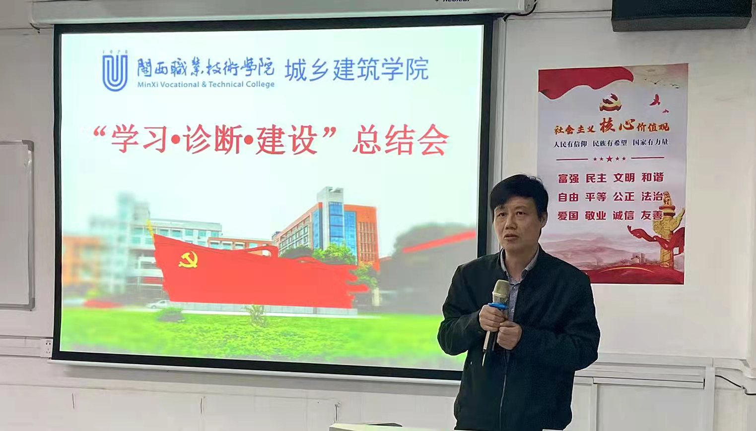 城乡建筑学院党委李志文书记对照二级院系党委“五个到位”和对标“双高”建设“十个提升”,认真总结今年以来开展学习、诊断、建设情况,坚持问题导向,从“对标双高建设,压实党委主体责任”、“加强师德师风建设,提振干事创业精气神”、“党建引领发展,推动高质量发展”三个方面部署工作,号召全体党员、教职工团结奋进,完成城乡建筑学院“十四五”既定目标。