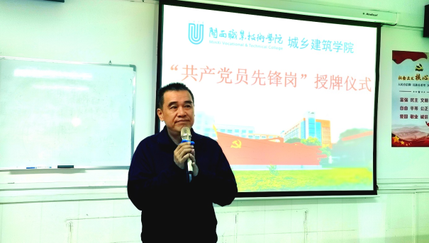 会上,卢伟耀书记为建筑工程识图特长生工作室、装饰造价特长生工作室、测量特长生工作室、BIM特长生工作室进行“共产党员先锋岗”授牌。