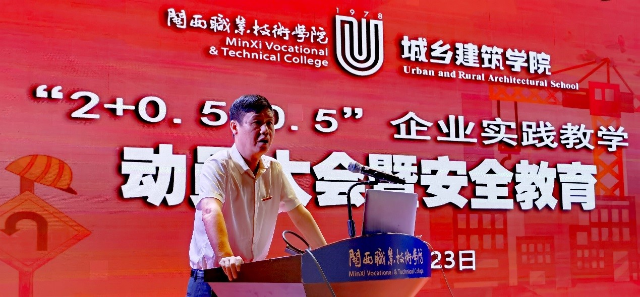 会议邀请龙岩大华鑫建设工程有限公司欧劲羽副总经理以《遵守安全生产法,当好第一责任人》为主题开展安全培训。要求全体同学通过学习通进行岗位实习安全教育并参加线上考核。