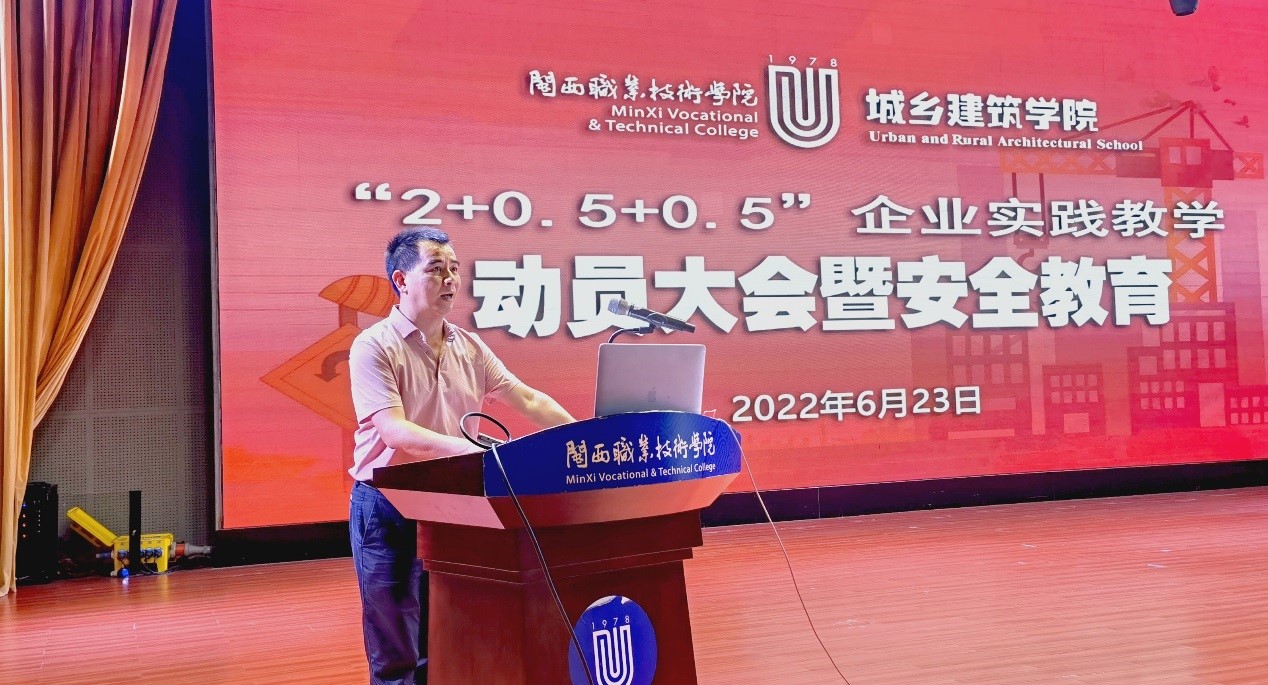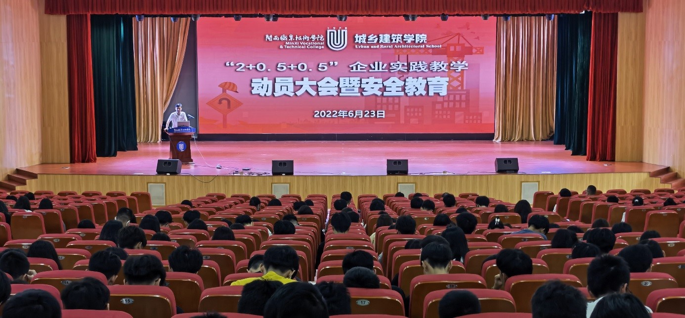 6月23日,城乡建筑学院“2+0.5+0.5”企业实践教学动员大会暨安全教育在大匠堂举行。院班子成员、专业主任、辅导员及2020级全体学生参加。会议由该院行政负责人主持。