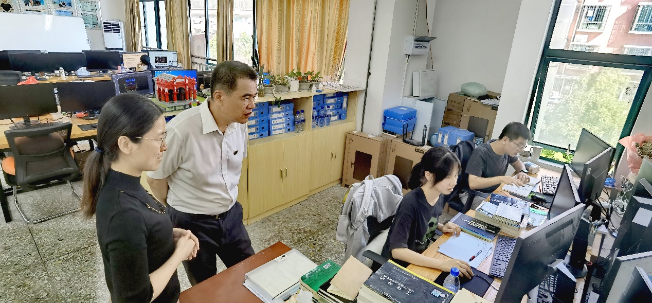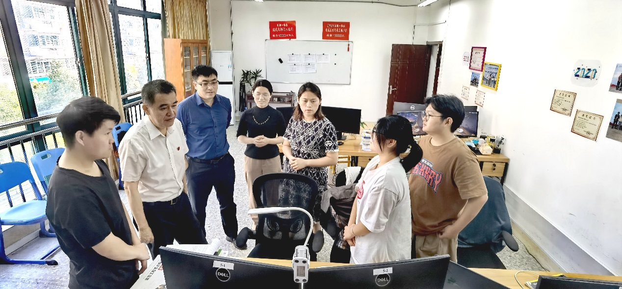 卢书记走到万源楼,看到城乡建筑学院特长生工作室的师生们正在认真训练,感到非常欣慰。他分别走进识图、BIM、装饰、测量四个特长生工作室,送上节日的问候,向指导老师详细了解工作室建设情况,让学生们分享训练心得,师生们其乐融融,不时爆出掌声笑语。