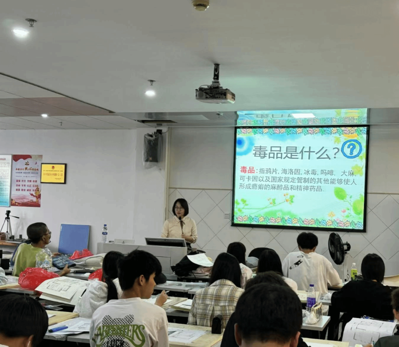 影片通过震撼故事和艺术表现揭示了毒品的严重危害,教育学生如何抵御毒品。同学们观看后认识到了毒品的危险,学会了防毒方法。各班级辅导员召开展预防毒品主题班会,通过通俗易懂的语言、生动鲜活的图文,结合实际案例,深入浅出向同学们讲解毒品相关知识,详细介绍了毒品的定义、种类、危害、相关法律法规、如何预防毒品等知识。