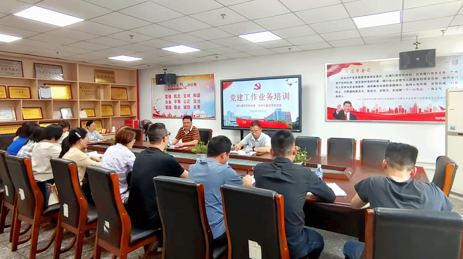 4月17日,城乡建筑学院党委、文化与旅游学院党委联合开展基层党建工作业务培训。学院党委委员、党支部委员参加。