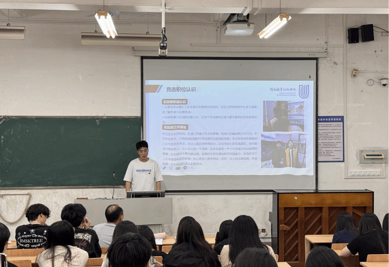 竞选分演讲和现场提问两个环节。候选人依次上台分别作自我介绍、工作经历、竞选优势和工作规划后,由师生评委围绕工作设想、团队协作、应急处理等方面进行提问,综合考察候选人的应变能力、解决问题能力等。