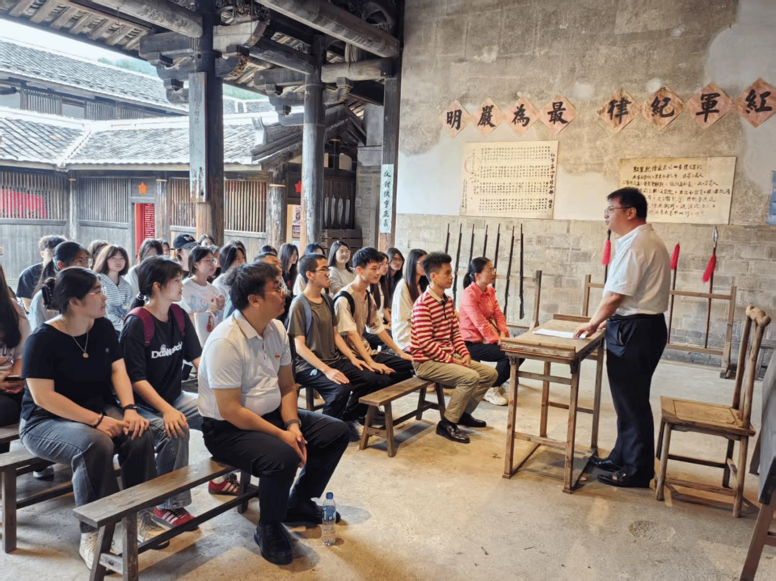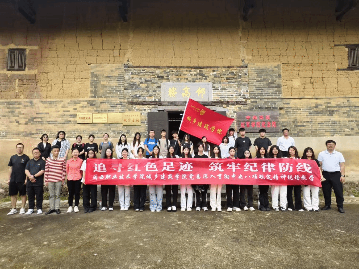 为深入贯彻中央八项规定精神,进一步加强作风建设,增强党员干部廉洁自律意识,5月24日,城乡建筑学院党委以“追寻红色足迹,筑牢纪律防线”为主题,组织全体党员、入党积极分子前往中央苏区红军学校旧址——仰高楼开展现场教学。