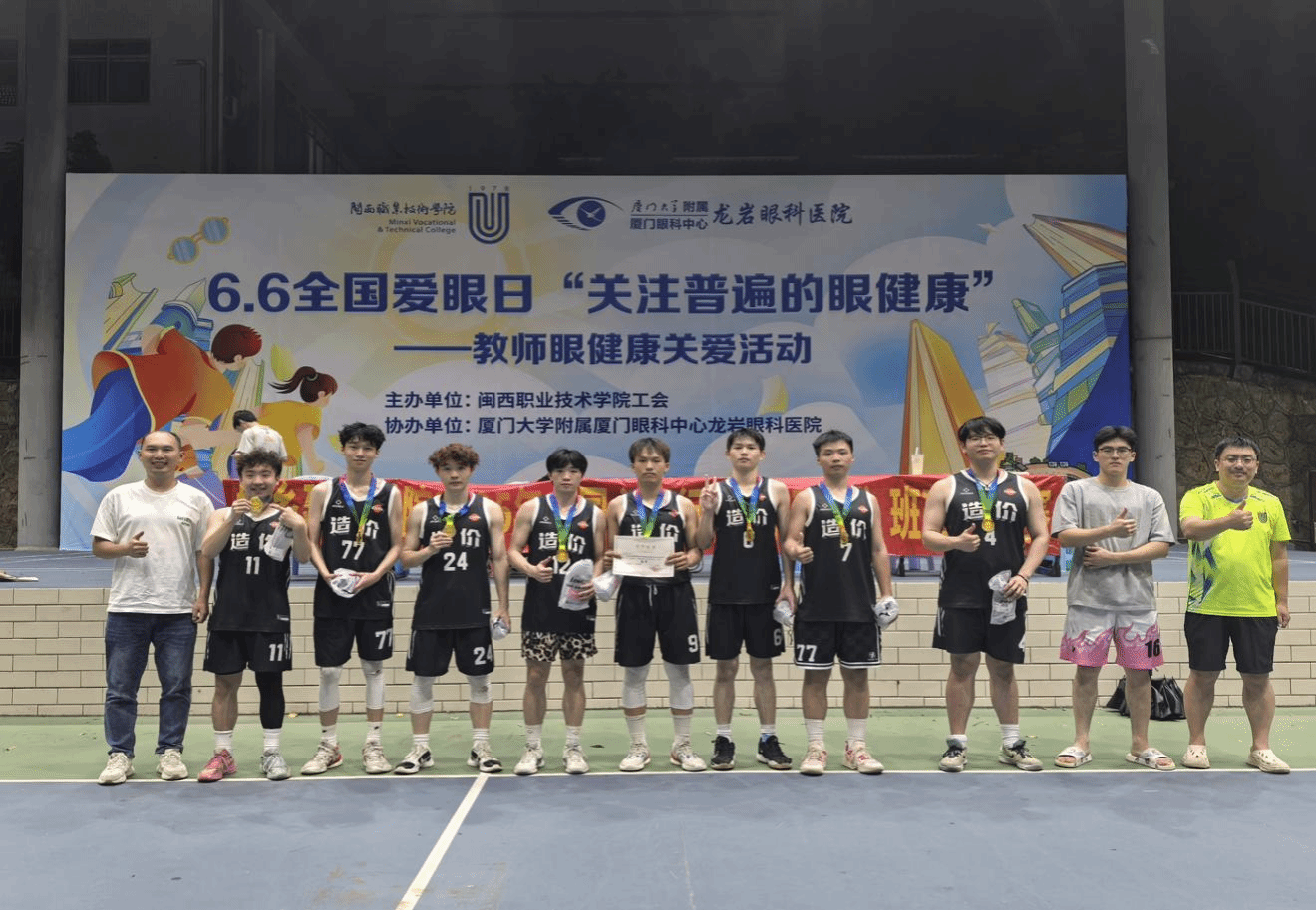 本次比赛由城乡建筑学院团委主办,旨在增强学生体质,提升班级凝聚力,为热爱篮球的同学提供展示平台。赛场上,球员们积极拼抢,展现出勇于拼搏和强烈的团队协作精神。经过2天的激烈角逐,2023造价3班斩获冠军;2023造价1、2班和2023建工3、4班分获亚军和季军。此次篮球赛的成功举办,不仅丰富了同学们的课余生活,也增进了班级之间的交流与友谊,在校园内营造出积极向上、团结奋进的体育氛围。