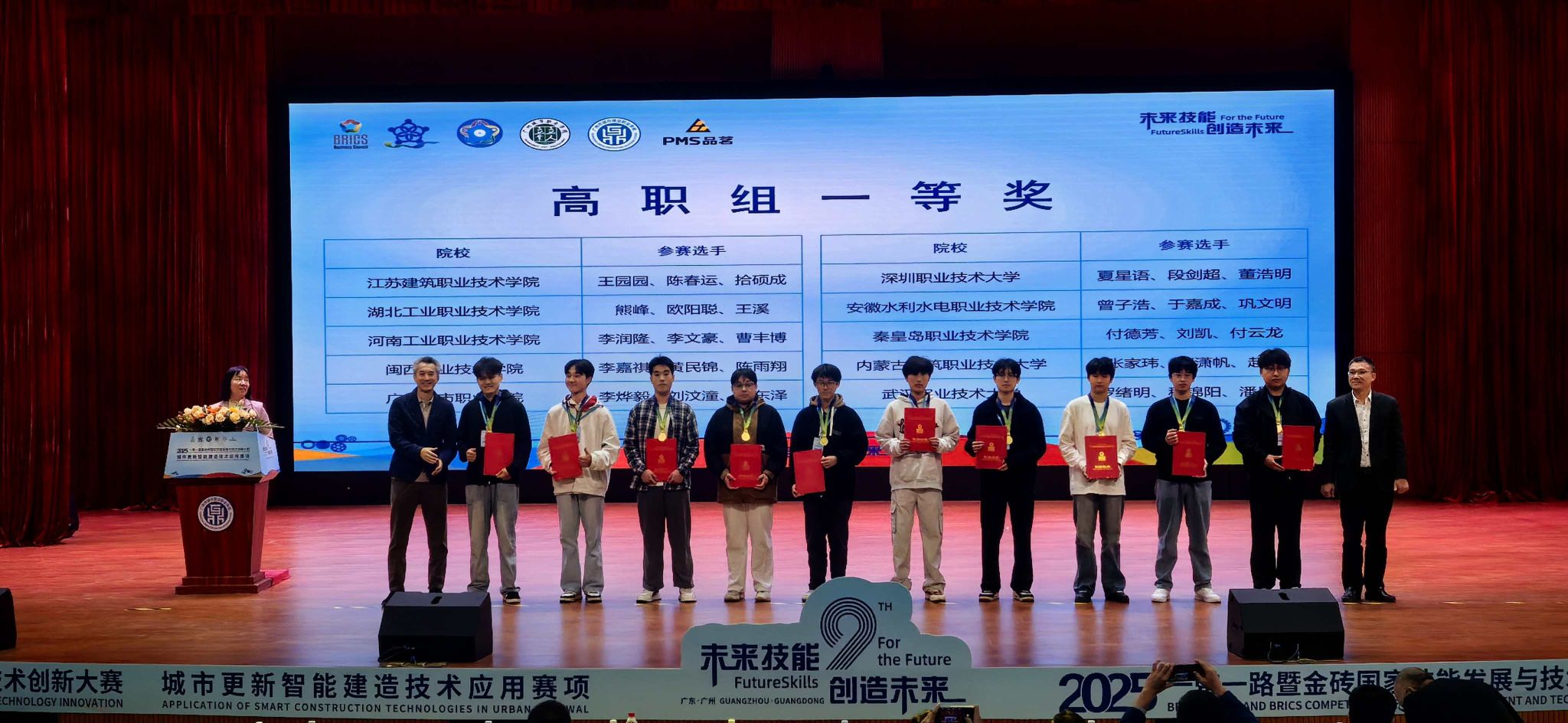 11月23日,2025"一带一路"暨金砖国家技能发展与技术创新大赛“城市更新智能建造技术应用赛项”全国总决赛在广州城市职业学院落幕。MG冰球突破官网城乡建筑学院的两支代表队双双获得全国金奖。