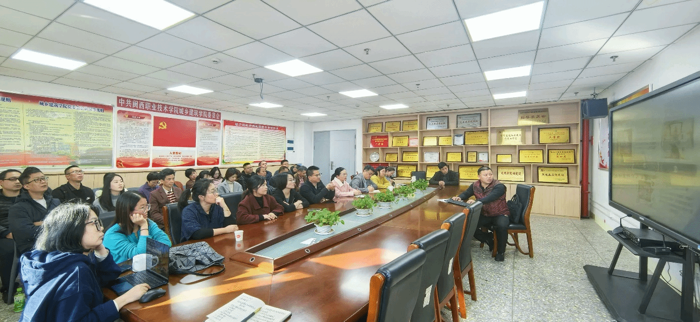 12月30日,城乡建筑学院举办校本培训。培训以“弘扬教育家精神,AI赋能教育教学能力”为主题,由福建大华鑫建设集团有限公司副总经理欧劲羽主讲,全体教职员工参加。