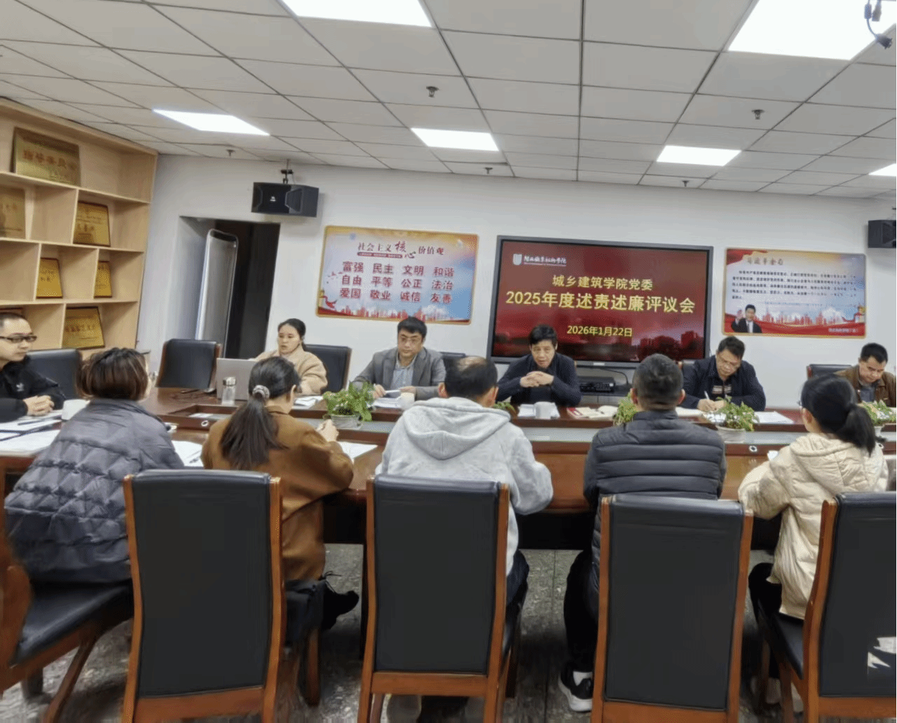 1 月 22 日,城乡建筑学院党委在万源楼 602 会议室召开2025年度党委领导班子述责述廉会议。学院党委委员、党支部书记、专业主任参加。会议由学院党委书记主持。
