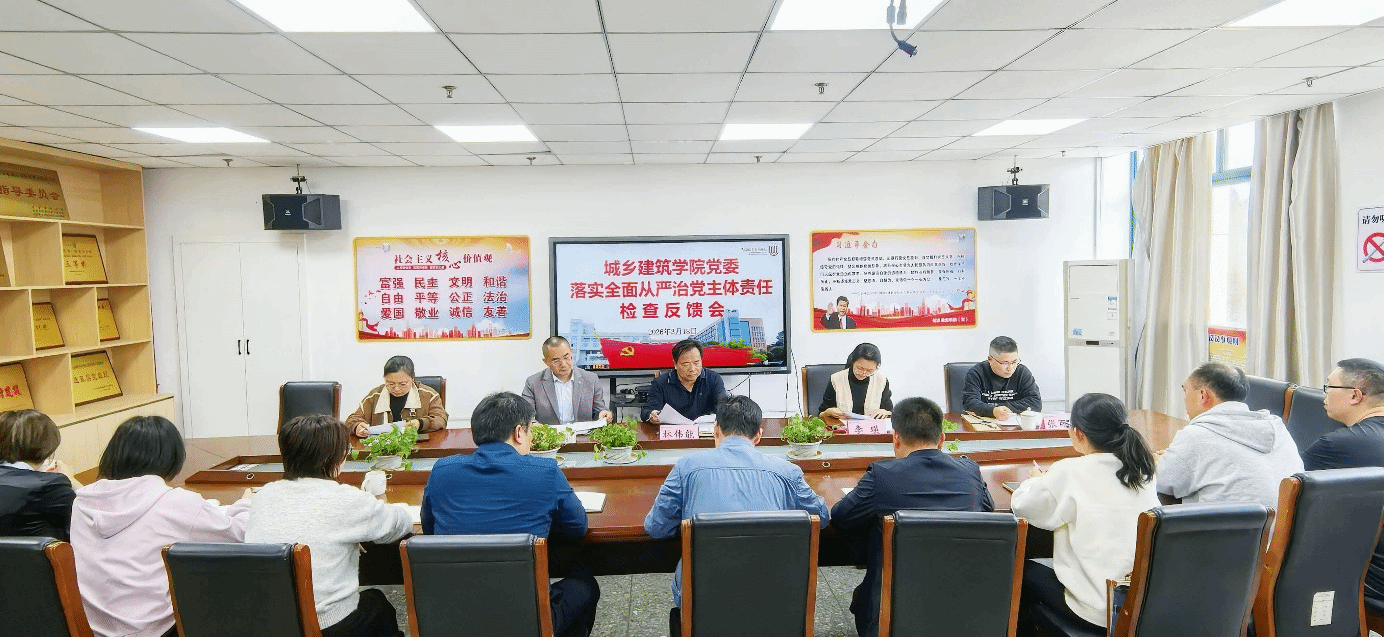 检查组认真听取了城乡建筑学院党委负责人汇报,实地察看了阵地建设、查阅了台账资料,与党委委员、支部委员和党员教师代表访谈交流。反馈会上,检查组肯定了城乡建筑学院党委工作扎实推进,2025年省委巡视和2024年度检查反馈问题整改到位,今后工作思路清晰,指出了问题和不足,要求进一步压实责任,巩固建设成效,发挥党建引领作用,推动学院事业高质量发展。